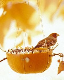 una zucca: dividere a metà una zucca e svuotarla dei semi e della polpa, fino al momento in cui ci si ritroverà con una ciotola formata dalla sua buccia da utilizzare come mangiatoia.