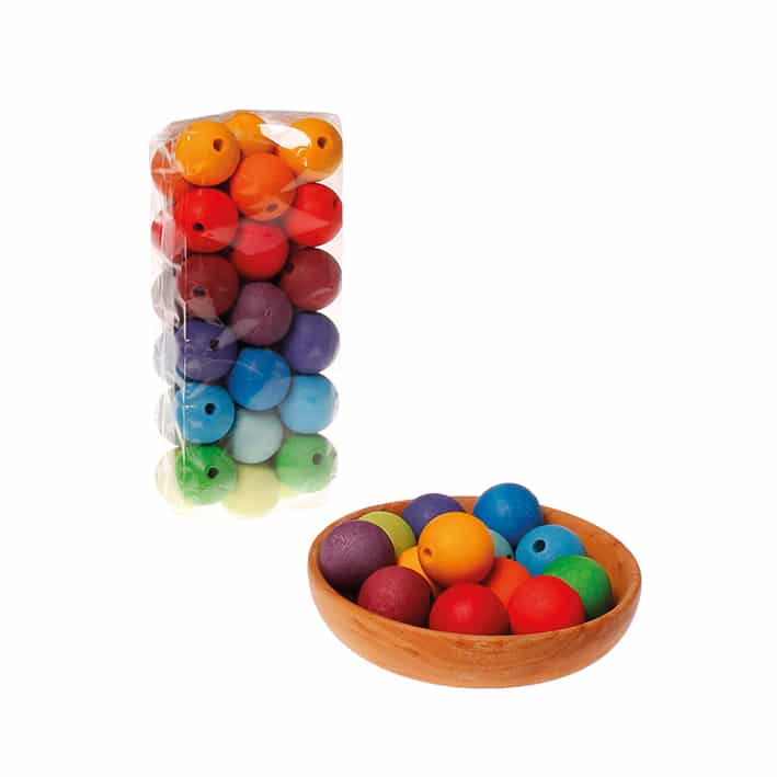 36 perline in legno grandi color arcobaleno Grimm’s.