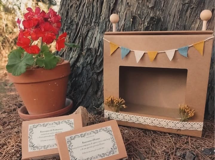 Un teatrino in cartone 20x20cm con manopole in legno e una pellicola illustrata che scorre, perfetto per raccontare storie durante le letture ad alta voce. Un modo magico per animare le immagini e i racconti. Teatrino: 23€ Pellicola aggiuntiva: 7€