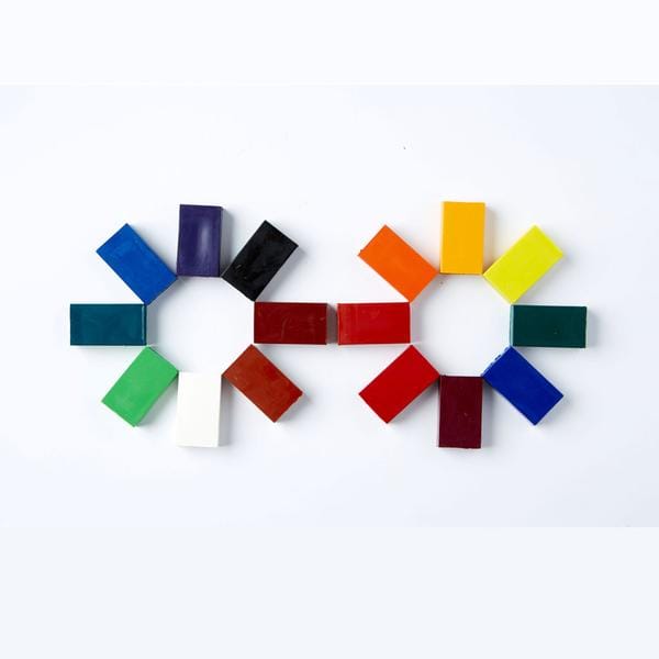 Mattoncini a cera Stockmar. Confezione 16 colori: 01 carminio, 02 vermiglio, 03 arancio, 04 giallo oro, 05 giallo limone, 06 verde pisello, 07 verde bottiglia, 08 verde smeraldo, 09 blu, 10 blu oltremare, 11 viola blu, 12 viola rosso, 13 marrone bruciato, 14 marrone, 23 verde oliva e 24 rosa.